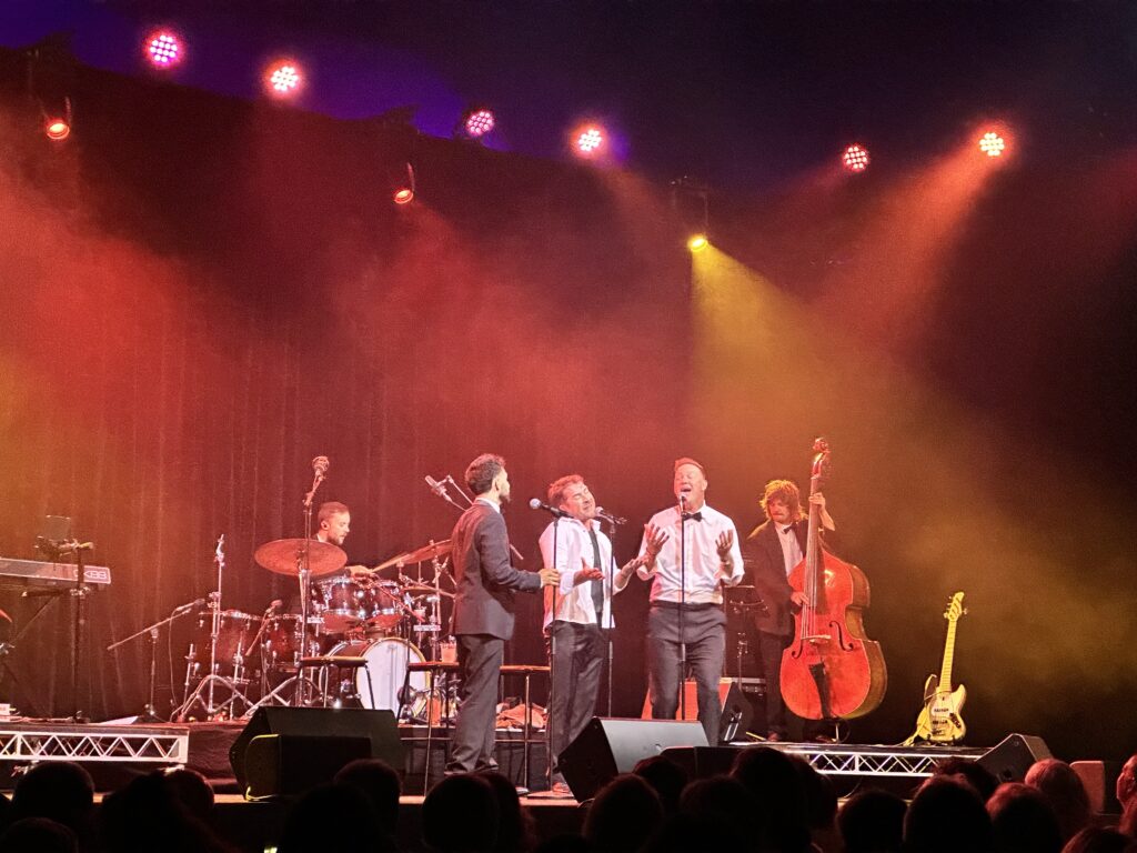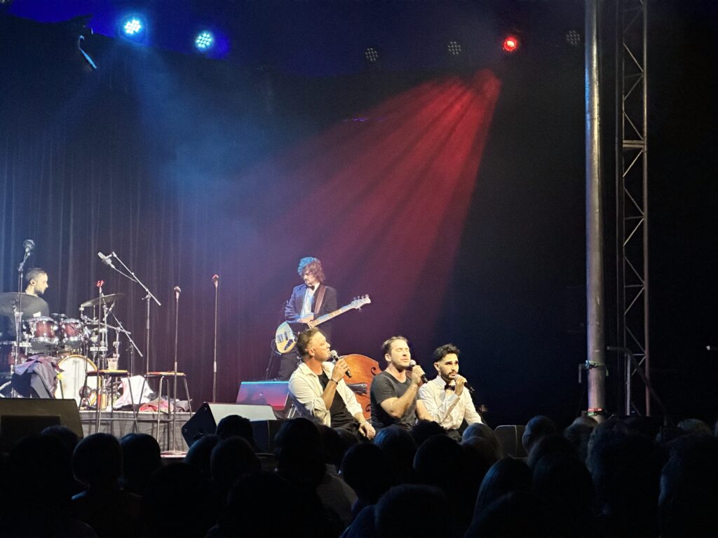 The set list was impeccable and varied, and, something for everyone…from Sinatra to Olivia Dean and Frankie Valli to Wicked the diversity was welcomed gleefully. If you weren’t tapping your foot and clapping your hands you were dancing and if you weren’t hummin’ along or mouthing the words, you were singing out load and proud. Hugh, Emile and Isaiah (His first perormance with CCC AND his first Sdelaide Fringe) spent much of the time sitting on the edge of the stage which broke down the performer/audience wall, as well as dancing up and down the aisles, whisking us up out of our chairs for spins and hugs. This show was ‘anything goes’ J.O.Y!