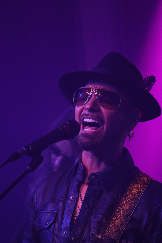 When Brian Canham took to stage though, we, the audience erupted! Canham’s sexy, panther-esque, black leather cladded style has developed to a level worthy of competing with Lenny Kravitz. He owns it and his comfortability with his stage persona is evident. A look that is vastly different from his 80’s style, more rock and more swagger – and pretty sure this guy has not aged in the last 30 years?? Canham had us firmly in his grasp as the music boomed and commenced the night with ‘Stranger In me’, the perfect start. And it rolled on… We didn’t have to wait long to hear a biggie either, ‘A Beat For You’, was pumping and it was now that I felt the night was not a night of nostalgia but of fresh music delivered by the consummate Brian and band. If someone in the venue wasn’t moving to the grooves yet and feeling the larger than life energy, this banger did it.