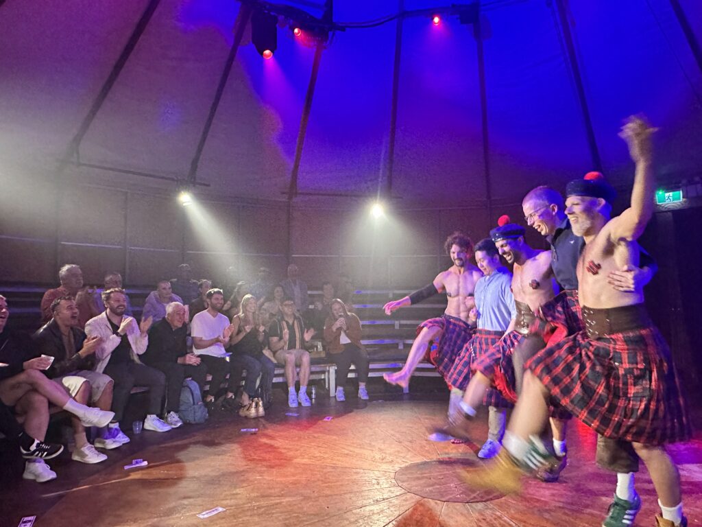 Together the cast create a lively chemistry that drives the show forward with the gears firmly set at SEXY. The performance blends dance, cabaret energy and theatrical teasing into a slick variety-style experience that feels right at home in the electric Fringe atmosphere. The crowd responds in kind – cheers, laughter and the occasional gasp ripple through the room as the show builds momentum.